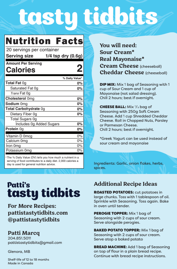 A popular dip and versatile herbal blend. Use it to make a fantastic vinaigrette or a delicious cheese ball. A delicious blend of garlic, herbs and spices. Your secret ingredient in tuna, pasta or potato salad. A garlic lovers dream!